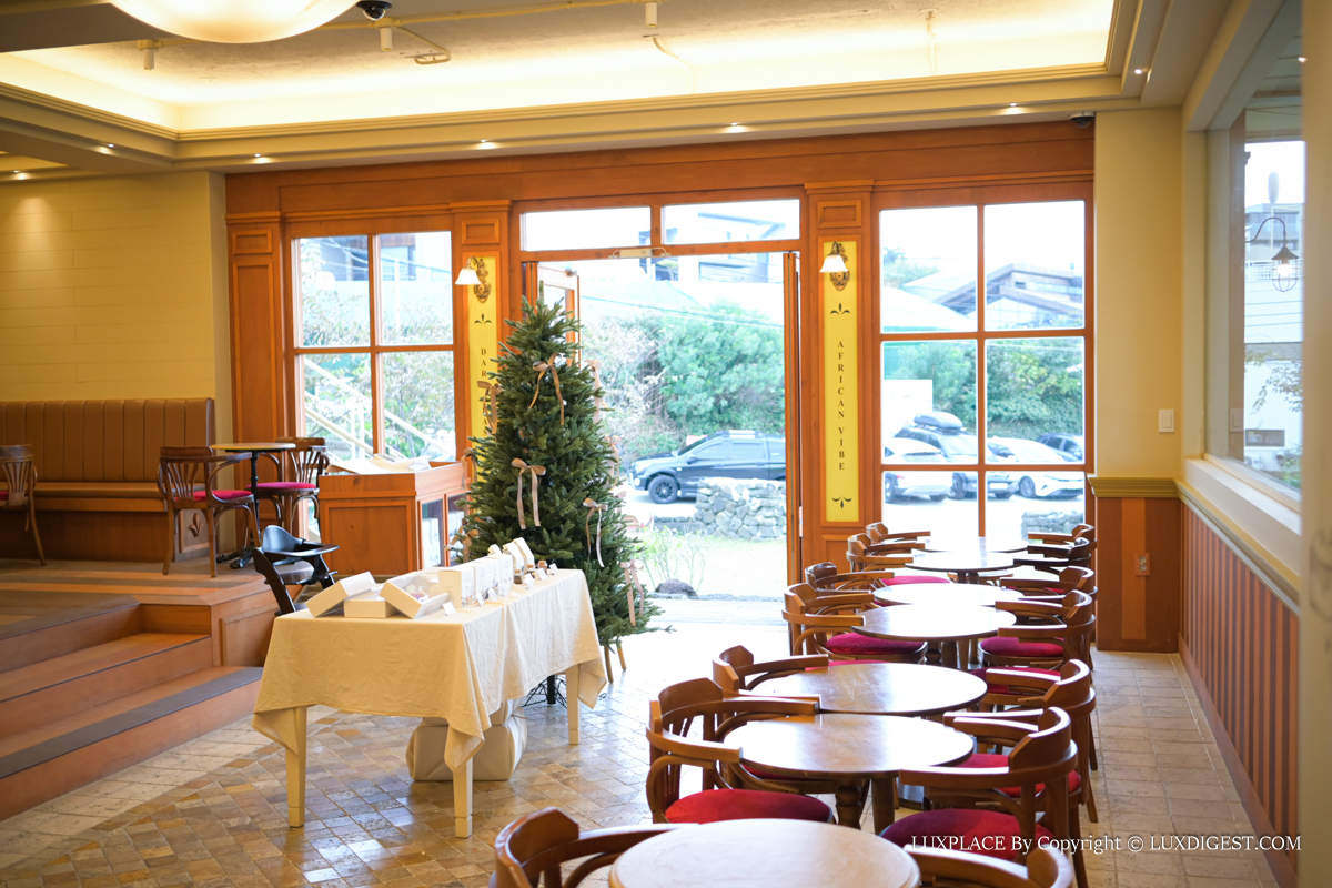 사진에서 보듯 편안한 인테리어와 앞의 정원이 카페의 분위기를 한층 고급스럽게 보이게 합니다.